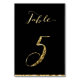 Números das mesas de casamento em folha de ouro impressos em fundo preto - número 5