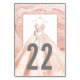 Adicione um toque de elegância ao seu evento com estes Cartões de Número de Mesa Aquarela Dourado Rosa, projetados para combinar com nossa Coleção de Vestidos Aquarela Dourado Rosa. Com uma ilustração de vestido de noiva fluindo, cercada por aquarela marmorizada e detalhes em folha falsa, cada cartão exibe um número cinza quente grande escondido na saia do vestido. Perfeitos para casamentos, chá de noiva e quinceañeras, e fáceis de personalizar com o modelo incluso!