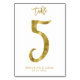 Cartões de números de tabela de casamento - Número 5 - com efeito de folha de ouro (faux, impresso como uma imagem) e texto personalizável - você pode adicionar o nome da noiva e do noivo e a data do casamento impressos em fundo branco