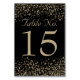 O elegante dourado de champanhe e os cartões de números de mesa pretos para o seu elegante casamento - o Faux champagne gold confetti e os antigos pontos de brilho dourado estão espalhados pelas bordas superior e inferior. Coordenando as letras coloridas, lê-se 'Mesa nº' com numeral personalizado sobre fundo preto para realmente fazer os pontos pop. Idêntico do outro lado. Personalize cada número de tabela separadamente e adicione ao seu carrinho de compro Zazzle.