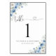 Números de mesa de casamento de marfim azul Dusty. Este na moda e elegante Convite para Chá de Casamento apresenta uma linda coloração d'água pintada manualmente Dusty Blue Ivory Floral. Localize itens correspondentes na Coleção Floral de Marfim Azul empoeirada.