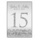 Esta moderna design de mesa de placa de apresenta sotaques falso de brilho prateado com fundo prateado. Perfeito para casamentos elegantes e modernos. As placas de números de tabela chegam a 50.
