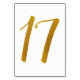 Tabela Número 17: Esta placa de número de tabela de script de pincel casual é definida em uma folha de ouro falsa. IMPORTANTE: A aparência mostrada é um efeito impresso. Não é folha de papel real. Se você não quiser esse efeito, poderá excluí-lo assim: 1) Clique em "Personalizar mais. 2) Localize a imagem que diz folha z-gold e elimine-a. Em seguida, escolha sua própria cor a partir das cores de fundo.