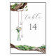 Esses lindos números de mesa do Jardim Doce são a adição perfeita a qualquer casamento elegante. Ramais de árvores com velas penduradas e um cheio de flores.