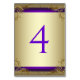 Números de mesa roxas e douradas com fundo roxo e espiral dourada. Basta adicionar os números necessários no estilo de fonte e na cor de sua escolha.