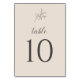 Simples e elegante com apelo minimalista, esta bela mesa de casamento tem um esquema de cores neutro que combina bem com uma variedade de paletas coloridas de casamento. Mostrada aqui no bege do outono, um simples tronco floral foliar adiciona um elemento na moda à borda superior do design. NOTA: Para criar uma placa de mesa para cada mesa, crie-a uma de cada vez. Edite o número da tabela, ou seja, a mesa 1 e adicione ao carrinho. Em seguida, edite a tabela número 2 e adicione ao carrinho. Faça isso para cada mesa que você precisará até que todos os números sejam criados. Depois que todos forem adicionados ao carrinho, você poderá concluir o processo de check-out.