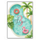 Faça um salto na comemoração de aniversário do seu filho com esta vibrante placa de número da mesa da piscina tropical! Apresentando um design com estilo aquarela com uma piscina moldada por palma, um flamingo flutuante, e um lindo anel de rosquinha rosa, este número de tabela adiciona o toque festivo perfeito ao seu decoro de eventos. Ideal para aniversários de verão, festas ao lado do polo ou celebrações de temas tropicais. Coordena-se perfeitamente com a coleção de cheios de convites, pratos, xícaras e guardanapos!