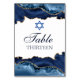 O azul e o ouro marinho elegantes enfeitam esses números de tabela do Bar moderno Mitzvah. Seu número de tabela está escrito em um belo roteiro formal sob a Estrela de David. Legal decoração para uma família judia na moda.