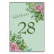 Numeração De Mesa Pastel Floral de Casamento Verde e Rosa