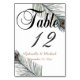 cartão de número da mesa de penas de pavão com uma elegante aparência de vintage