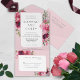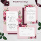 Elementos: Rosas e peônias em um fundo rosa poeirento. Seus detalhes são emoldurados em uma moldura geométrica moderna. Fontes modernas sem serifa são usadas para um visual limpo. Cores: rosa poeirento, burgundy, marsala, amora, blush, malva, creme, ameixa, verde. Temas: romântico, botânico, boho, natural, jardim encantado, vintage, country. Jardim boêmio. Coleção: Coleção de Cartão de Mesa de Noiva com Moldura Moderna de Peônia Rosa Poeirento Romântico. Tipo de Produto: Cartão de Mesa