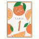 Esta placa de número da tabela do chá de fraldas, bonita e moderna, "está a caminho" apresenta laranjas e fatias laranja num fundo creme enquadrado por uma borda laranja clara. O verso apresenta um fundo cor de laranja claro com padrões cor de laranja. Personalize-o para as suas necessidades. Você pode encontrar produtos correspondentes na minha loja.