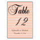 Placa de números de tabela Peach e White Stripes com uma aparência elegante de vintage