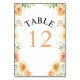 Numeração De Mesa Pêssego, flores e folhas de aquarela