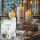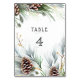 Lindo cartão de número de mesa de casamento de inverno com pinhas de aquarela, galhos de agulhas de pinheiro e gravetos da floresta.