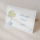 Este design é vendido como uma placa plana de 3,5x5 polegadas que você precisará dobrar (ou pontuar e dobrar) ao meio para fazer placas individuais de lugar ou cartões de bufê com um tamanho dobrado de 3,5x2,5 polegadas. Este design clássico apresenta uma árvore de limão de cor d'água estilizada, com faixas de médio azul e branco de chuveiro no reverso.
