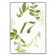 Um cartão elegante e branco com folhagem verde de cor aquosa. Isso será perfeito para casamentos, chás de fraldas, aniversários e outros eventos. Itens correspondentes estão disponíveis.