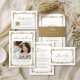 Esta elegante carta de núpcias dobrável apresenta a escrita clássica e o design de vintagem ornamentado em cor dourada, com casais monogramas nas costas, simples e eternos, excelente para o casamento clássico moderno, casamento vintage romântico e casamento tradicional formal. Veja todas as peças correspondentes na coleção.