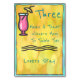 A placa de mesa Bunco colorida e casual apresenta uma bebida rosa completa com um guarda-chuva. Placa de mesa nº 3. Faça um brinde aos vencedores à medida que eles vão para a mesa dois!