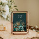 Numeração De Mesa Placa de Mesa Floral de Luxo Dourado Teal