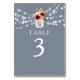 Guie seus convidados com elegância usando este cartão de número de mesa de casamento azul empoeirado com luzes de corda brilhantes e flores burgundy e blush românticas em um jarro de mason. Projetado para casamentos rústicos ou ao ar livre, é um adição elegante a qualquer mesa de recepção.