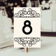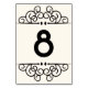 As placas de números de tabela com estilo deco de arte elegante apresentam um fundo de marfim quente com ilustrações florescentes de vintage de ornamentado e o número de sua tabela em preto nítido. Coordena-se com a nossa coleção de convites Deco Flourish.