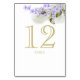 Cartão de número de tabela de lilases púrpuros com cor d'água espantosa flores roxas de lavanda e folhagem de gaze. O texto Dourado pode ser alterado para qualquer cor. Edite e altere cada número de tabela e adicione ao carrinho individualmente para cada número de tabela necessário.