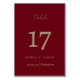 Placa de Número de Tabela Personalizada do Script Burgundy Elegante