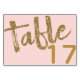 Essas placas de número de tabela impressas personalizadas apresentam um fundo cor-de-rosa pincelado e letras de script ouro brilhantes. Observe que esses produtos impressos têm apenas uma aparência de brilho e não são feitos com brilho real.