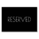 Cartão de lugar simples, preto e branco, simples, reservado. O texto "reservado" impresso branco fino está impresso em ambos os lados das placas planas. Tema neutro para qualquer tipo de reunião, elegante ou casual.