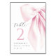 Adicione um toque de elegância às suas mesas chás de panela com esta placa de mesa de arco rosa-chic. Apresentando um script manuscrito romântico, tons de pincel suave e um design de coquete sofisticado, esta placa é perfeita para números de tabelas, configurações de lugar ou etiquetas áreas especiais no seu evento.