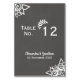 Simples cartão de número da mesa de casamento rústica projetado em cinzas de ardósias e gráficos no estilo de giz branco e letras. Design de dois lados com detalhes espelhados na parte traseira. Todas formatadas e prontas para que você simplesmente substitua a numeração e o texto em uma placa de cada vez. Edite e adicione cada um ao carrinho separadamente. Coordena o convite para o casamento, a RSVP e toda a coleção de artigos de casamento em www.zazzle.com/monogramsandmonikers