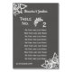 Simples cartão de número da mesa de casamento rústico com nomes de assentos para até dez convidados por cartão de mesa. Projetado em cinzas de ardósias e gráficos no estilo de giz branco e letras. Design de dois lados com detalhes espelhados na parte traseira. Todas formatadas e prontas para que você substitua a numeração e todo o texto em uma placa de cada vez. Edite e adicione cada placa ao carrinho separadamente. Você só precisa editar um lado para que as edições apareçam frente e verso, mas verifique dois lados antes de adicionar ao carrinho. Não se esqueça de editar os nomes da noiva e noiva e a data em cada um também. Coordena o convite para o casamento, a RSVP e toda a coleção de artigos de casamento em www.zazzle.com/monogramsandmonikers