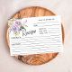 Design floral rústico simples e elegante de cor d'água (cor d'água) verde verde, pincel, púrpura, lavanda, rosas de flores lilás/pénia sobre fundo branco e letras negras. CARTÕES RECIPE chá de panela para o tema primavera ou verão.