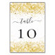 Um fundo branco elegante, decorado com poeira falsa de ouro brilhante. Personalize e seus números de tabela. O menu de janto correspondente está disponível em nossa loja!