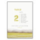 Número do Cartão de mesa com a paisagem natural de montanha. Suavidade Natureza paisagem primavera pradarias verdes em floração. Silhuetas de montanhas rochosas castanhas, campos de grama e flores brancas de dandelion. Número da placa de Mesa de fundo da pintura em aquarela. Pradarias na Coleção Bloom.