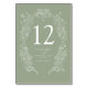 Primavera de fleur de lis desenhado à mão com um elegante número de casamento enquadrado com primavera, folhas, guloseimas e pequenas borboletas. Em verde clássico simples, com letras brancas e desenho, personalize com seus próprios nomes, iniciais monogramas e números de tabela. Cada número necessário deve ser adicionado ao carrinho, um de cada vez. Outras cores e itens correspondentes estão disponíveis ou podem ser criados por solicitação. © Desenho manual original e design por Sarah Trett para www.mylittleedenweddings.com no Zazzle.