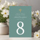 Elegante número da primeira mesa de comunhão religiosa religiosa verde.