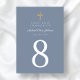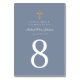 Número da Primeira Tabela Comunitária da Cruz Azul Personalizada. Parte do Pacote de Convite da Primeira Comunhão Dusty Blue Cross Boy com convite, papelaria e acessórios de festa correspondentes disponíveis.