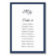 Quadro azul simples do Marinho. Número da tabela do plano de assentos do Solteiro de casamento elegante.