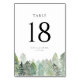 Adicione um toque de inverno pacífico ao seu evento com esta placa de número da mesa de cor d'água, com uma floresta verde nevada e neve suave. Ideal para casamentos no inverno, banquetes de férias e comemorações sazonais. Personalize cada placa com o número da sua tabela para ajudar os convidados a encontrar seus assentos com facilidade. Os pinheiros com aquarelas moles trazem um olhar rústico, mas elegante para a sua mesa. Estes números das mesas de inverno são um ajustado perfeito para florestas, planícies de inverno, ou eventos temáticos em montanha.
