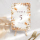 Queda De Flores Selvagens Número Da Mesa De Casamento Laranja E Castanho. Personalize com seus nomes e data do casamento.