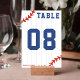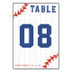 Placa de número da mesa de baseball / recepção de casamento de softball branco e azul vermelho com pinstripes. Personalize-o com os detalhes do evento. Excelente para fãs esportivos.