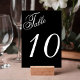 Número de tabela de recepção de casamento preto e branco com fonte de script elegante. Personalize-o conforme necessário.