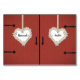 As portas vermelhas do celeiro são decoradas com coroas de margarida em forma de coração na frente deste cartão de número da mesa de recepção de casamento rústica. O interior do celeiro carregar o tema pelas costas. Todo texto é facilmente personalizado.