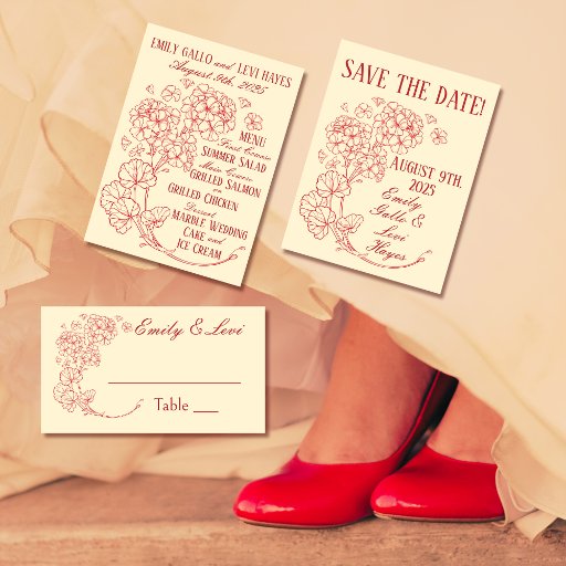 Numeração De Mesa Red Geraniums em Beige Wedding