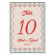 Numeração De Mesa Red Script Blue Line Retro Wedding Table Number