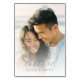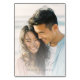 This wedding table card features a romantic beach scene with two individuals smiling warmly, creating an intimate and affectionate atmosphere. The design uses a soft pastel color palette of warm beige and cool blue tones, complemented by muted clothing colors that enhance the serene mood. Elegant cursive typography for "Table 12" is paired with simple sans-serif text for personalization, adding sophistication to the minimalist layout. The overall style is contemporary and realistic, capturing genuine expressions and evoking feelings of love and joy, perfect for celebrating special moments at your wedding.
