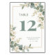 Romantic Floral and Eucalyptus Branches Wedding Table Number Cards with Elegant Greenery Frame.