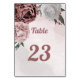 Lindo cartão de número de mesa botânico com flores românticas rosa, branco e rosa canela/ chianti com folhas verdes.